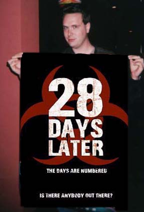 The explanations come from Selena and Mark (Naomie Harris and Noah Huntley respectively), two uninfected innocents who have been through 28 days of pure Pandemonium in a post-apocalyptic London controlled by fiends that make Mad Max's enemies look like the Care Bears! Along the way they face death, undeath, new travelers, fires, corporate greed, humor, new death, new undeath, and Britain's finest officers of the military, all of which combine to show a bleak present and a scary as hell road picture which isn't afraid to have more than two acts. Writer Alex Garland (thus far known solely for the novel upon which that Leonerdo DiCraprio turkey The Beach was based) puts new spins on previously established Zombie mores. For example, the Zombification process is a purely scientific contagion not even based in VooDoo. He tells the story in chapters which on one hand gives an episodic feel and on the other doesn't make the film feel condensed or in any way formulaic. The opening is wonderful, but after seeing the rest of the film almost feels unnecessary! Everything is explained so well, that the film could have started with Jim's awakening. I suppose that Garland might need to change the title without that opening, though. Danny Boyle can't be typed as a director. This guy is all over the board. He has a great feel for horror though, making very sure that he knows what really is scary. There is some blood, no doubt, but this isn't a spoon-fed easy horror, but more of an unseen menace. Even when the "Infected" are (quite literally) in your face, the camera is shaky and quick cuts are used to break up what you see and blur comprehension. Boyle also knows when to rely on action and when to slow things down. He never seems to be in a hurry, and allows the audience to get to know the characters on their own. Nothing is ever over-explained here at all, and any small lapses are acceptable due to the focus. The music is likewise fantastic and mood capturing. Composer John Murphy seems to know exactly what works best as a compliment to Boyle's scenes and executes a number of moods in one varied, yet cohesive score. Watch this Space for a review of the 28 Days Later... Soundtrack Album! This is a low budget film, recorded entirely with digital cameras. This made for a unique look to the film, and an almost documentary feel, but also opened the door to some flaws. For one thing, this is a relatively grainy film. There are more blurs than one might be used to, and the entire movie feels like something you might view on BBC America. While many viewers might be uncomfortable with this, it does add to the reality and discomfort and provides many cinematic experiments that Boyle can use to keep the viewers off their toes! Also due to the budget, one couldn't recreate London, therefore the London that you see is the real one. Boyle chose his filming times just to the point that the sun was up but there was no traffic. Great idea, but it doesn't always work. For one thing, there is only a small window in such a large any bustling city in which both emptiness and light can exist, therefore short scenes had to be filmed over many days, and in subtle ways you can tell. Also, in one scene in which it is vital that Jim sees no one on the streets (he's constantly calling for anyone to help him) there is obviously another pedestrian on the street in front of him. True, Jim's body blocks that person out for the most part, but it's there. Let me make clear though that one shouldn't murder this movie to dissect it as I have. It's a great one, and there's no way that I (or most actual film makers) could have made a film this good on this budget, and make it seem this clean. Nitpicking aside, there isn't much to complain about! Four Stars out of Five for 28 Days Later... a well-acted, well directed, and well written scary movie. You might like it if you enjoy horror in the vein of The X-Files or other similarly subtle scary works. You might want to avoid it if you can't stand the sight of blood, or if you need your horror, like your comedy, handed to you. Also, be warned, this film is coldly cynical about society and humanity's inhumanity to humanity, where even those who are supposed to be of help are self-serving and coldly logical. This is manifold more frightening because logic, like movie reviews, is subjective and variable! |