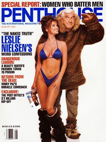 Since 2005, we've taken a few moments to pay respectful tribute to those who have passed on before us and left the world of entertainment a better sphere of influence to the point that the honoree's fingerprints are all over the year, as if they were still pulling the marionette strings themselves. None of the previous years has been the proverbial lead pipe cinch when it comes to getting on the trolley and finally choosing the honoree, but this year I'm especially slow in the revelation. This sad tardiness isn't due to lethargy, nor is it due to alcohol abuse or even the concept that I couldn't quite pinpoint the King Kong-sized, Superman-strong, Troy McClure-talented, Effectively Special Great Bird in the room. No, it's because there were so many wonderful impacts on 2010 that choosing just one was like deciding which one of your children to give a Kidney to (whether they need one or not). So many possibilities and what is one man to do? In this case "The Year we Make Contact" isn't exactly a repeat of previous years! This year's DMOTY is decidedly off-the-beaten-path from the most obvious choices out there but his impact is no less for the uniqueness. This choice is as surprising as the honoree's career has been. Don't get so excited that your gun goes off prematurely, just think about baseball and you won't have that problem anymore. Last year may have given us our first ever Dead Woman of the Year but for 2010, allow me to present the MOTHER of all DMOTYs! "Give up?", he boldly asked even though the Dead Man of the Year's name is listed in huge letters just above this article, as if the honoree's photograph isn't right next to this very paragraph! That's right, folks... the Dead Man of the Year is the Deadpan of ANY year, Leslie Nielsen! Yes, Leslie Nielsen! Only the second-ever Canadian American honoree, only the second ever DMOTY to be honored the same year he died, only the second comic actor and only the seventh Dead Man of the Year to be honored in the past six years. (Note: The 2006 award went to two men, look it up. But then again, the 2009 award-winner was a woman, so I guess he's the sixth of six, if you're taking dead "Man" of the year literally, which, by definition of the rules, can't be taken exactly literally so... I'm not sure why I even wrote this whole parenthetical explanation which really was more of a wast of time! I wish my BACKSPACE key wasn't broken!) Leslie William Nielsen was born in Regina, Saskatchewan Canada on February 11, 1926 to a Canadian Mounty from Denmark and his Welsh Wife! That's right, he was born to a Danish Canadian Mounty Daddy named Ingvard and a Welsh Homemaker Mommy named Mabel and some people were surprised that he had comedy in his blood. You can't make this up, man! Unfortunately, living with said Red-Coated Constable was no laughing matter, as the senior Nielsen was abusive to his wife and Leslie and his brother Erik (incidentally a future Deputy Prime Minister of Canada). Though both boys were destined for greatness in one way or the other, Leslie Nielsen's first method of Escape wasn't into acting. Right out of High School, Nielsen enlisted in the Royal Canadian Air Force to become an aerial gunner during World War II. Fortunately for us (and for the Nazis he surely would have sent straight to hell), our man never saw combat before the Great War's end. Instead Leslie used his eventually recognizable voice to become a Radio DJ (after his famous uncle, radio actor Jean Hersholt). Also like his uncle, Nielsen's Radio work led to theatre work which led to a career in moving pictures. He performed in Summer Stock Theatre and was truly inside the Actor's Studio before his 1948 television debut opposite no-less a co-star than Charlton Heston! This debut led to a surprising amount of work in Live Television episodes both on camera and appearing only in the form of his unique and noteworthy voice. Possibly because he was one of many stock actors of the day and possibly because live television didn't pay a whole hell of a lot, Nielsen worked more and more until he was able to leap from the small black and white screen to the big, color screen. He debuted in movie houses in 1956's The Vagabond King and quickly followed that film up with turns in Ransom!, The Opposite Sex and as a true leading man in the epic science-fiction adventure Forbidden Planet! Not bad for a long, eventful career in Cinema, wouldn't you say? Well, all of those films were in the same year of 1956! Wow! It's safe to say that MGM was good to Nielsen, giving him shots in musicals, sci-fi flicks, dramas, romances and, yes, comedies all within the mid-1950s. Still he was mostly considered a charming leading man, a dramatic actor, action hero and romantic lead, not the farcical comic he would one day become. For some it's hard to believe that the eventual star of The Naked Gun series was once known for his dramatic, action-packed roles. Between 1959 and 1961, Nielsen starred in the Disney adventure TV series Swamp Fox and even sang lead vocals on the theme song. The show was a big and well-respected hit in its first run and continued to be viewed throughout the next few decades in repeats on ABC and The Disney Channel! I, personally, was born fifteen years after the first episode aired and I watched it... without even realizing the star was "the guy from Police Squad!" Yes, Hollywood Studios were good to Leslie Nielsen in the 1950s, but Leslie Nielsen's return to television throughout the 1960s proved to be just as good. These were only a few of his over one thousand five hundred television episodes throughout his amazing career. Still, his appearances in high-profile Hollywood movies were far from finalized in this era. Nielsen helped to lead an all-star cast in the dramatically SOAKED action flick The Poseidon Adventure, not to mention the actioner Project: Kill and the disaster flick City on Fire! However in 1980 something amazing happened that impacted the world of Comedy l