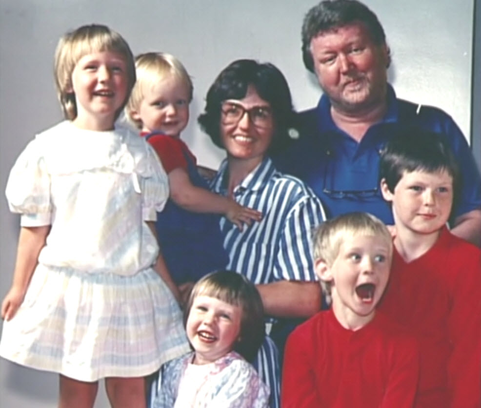 This may look like any ordinary family, but that's actually Harry Nilsson with his third wife and just a few of the kids. Harry had fallen on harder times, but he was still smiling. |