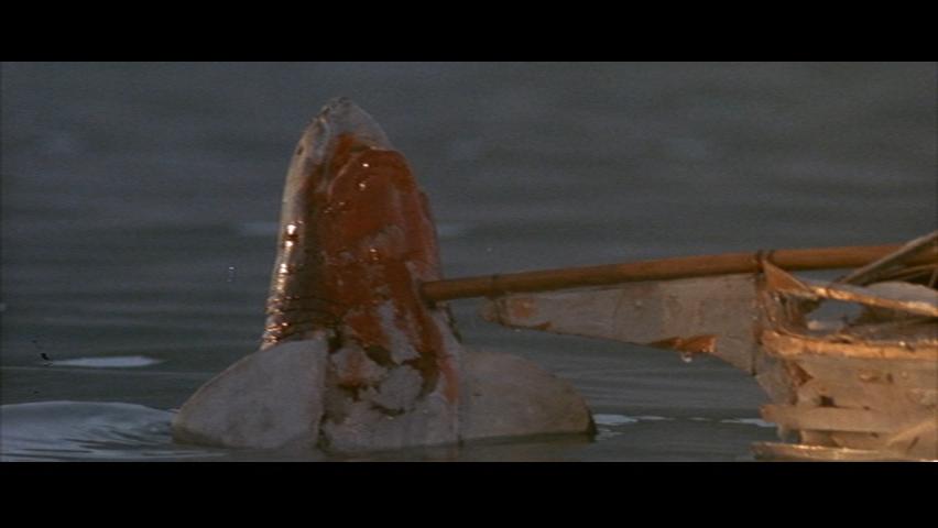 Here, we see a completely different prow than the previous fake one (notice the loose metal strut is gone). Also, dig the even break on the edge of that prow. Didn't the Shark bite that thing off as Jagged as you please?