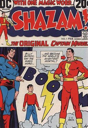 This time the comic was called Shazam! and only identified the main character as "The ORIGINAL Captain Marvel" in a subtitle on the cover of the first issue. As if to say "All is forgiven.", Superman himself appears on the cover of Shazam! #1 to introduce the character.