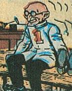 Top: Marvelman's Nemesis Doctor Gargunza (left) plans something evil at a work bench. Captain Marvel's Nemesis Doctor Sivana (right) carries out an evil plot while sitting on a work bench.