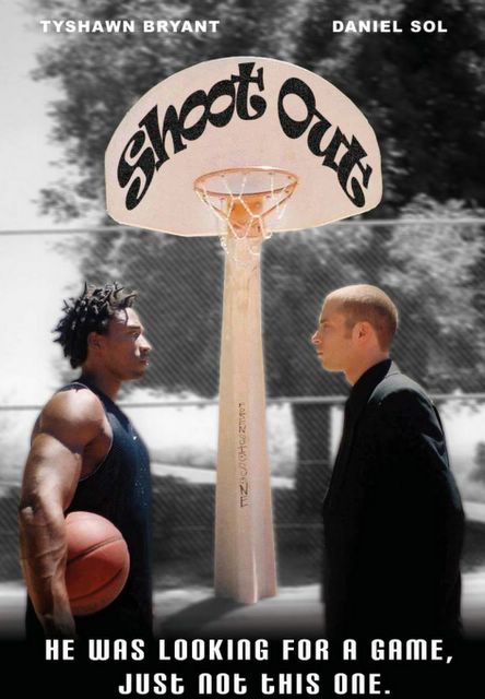 Shot in glorious black and white, Shoot-Out is the story of a Basketball Hustler named House Washington (excellently portrayed by Executive Producer Tyshawn Bryant). House always wins! The man has never lost a game for money, and street ego drips off of him like neon sweat in a Gatorade commercial as he trash talks and boasts of his career of taking fools' money. That's all until a mysterious stranger (Daniel Sol's J.C. Matado) arrives with skull-cracking skills of his own. What does (the other) J.C. have in store for House? A wager far beyond the usual thousand-dollar game of H.O.R.S.E., indeed far beyond anything House has played for up until now. What follows is an incredibly well choreographed and photographed basketball game between equals, laced with remarkably natural dialogue and realistic action. I promise no spoilers in this one, but let's just say it culminates in an ending that is a complete shock that, sure as Smirnoff is sour, I didn't see coming! Folks, I'm not easy to fool. Shoot-Out has an ending that made me feel as if a knot was untying in my chest, like the dominoes had been perfectly set up and finally knocked down, or a house of cards the size of a Trinitron just went three rounds with an Earthquake. What's Shoot-Out's secret weapon? Writer/ Director David Branin! Branin takes a somewhat single-layered story (this is a short, after all), and adds pacing and dialogue, and a more than healthy dash of unconventional and daring directing. This is one writer who really should be directing his own material! From the believable blocking and script extrapolation, to the challenging camera angles and kick-ass Basketball choreography, to his ability to tastefully use foreshadowing clips, to his intelligent choices of when to utilize the shaky, hand-held camera work to when to hold still and let the actors do their thing, David Branin really delivers. Not that he could do it alone. While the entire ensemble crew is worth their weight in Air Jordans, special kudos have to be handed to editor (and sound mixer) Damon Stout, whose smooth cuts and seamless transitions are a compliment to the story, and, of course, to composer Rudy Mangual, who sets every mood and enhances the action without being conceited enough to try to compete with the sounds and visuals of the movie itself. Whose visuals? There's no question that this is David Branin's film, but the capable Ivan Rodriguez is one Director of Photography I'd gladly buy a beer for, considering his talent for bringing Branin's mind to the screen (just don't challenge me, there, Ivan!). Branin's partnership with actor and Executive Producer Bryant has paid off here, as good old Tyshawn is as good an actor as he is a Film Manager. But hey, I was what I gleefully refer to as "Funkin' Druck" when I saw it right? Naturally my old "Aunt Ethyl" lubed my movie viewing wheels that night, right? Wrong! The joy of Shoot-Out is in the repeated viewings. The sober viewer who now knows the ending will be elated over how well the gears mesh together as they turn toward that finale I was telling you about. When you see the dotted eyes and crossed tease within the final clincher sequence you'll know what I mean, because you'll want to see it again. What does it take to make a good film? Scope, acting, directing and editing, and if you're really lucky, a good and complimentary musical score. Shoot-Out takes the Pepsi Challenge against bigger movies of its kind, and wins the free throw. Therefore, I'm not the slightest bit exaggerating when I award Four and one half stars out of Five to Dream Regime Productions' Shoot-Out! Tyshawn and David have got what it takes, kids, and they've certainly got a feature film in their future. Let's just hope it's not this one. Shoot-Out is nearly perfect as a short film, taking neither too much or too little time to tell its tale. In brief, Goldilocks would choose the "just right" Shoot-Out, assuming our girl could handle the subject matter! Let it take you by the hand and blow your little mind, while I shoot my way from the three point line into the next reel. |