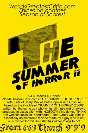 Now, the Summer of Horror returns with a new CHILLING HEAT WAVE! The 2009 Summer of Horror starts on 6.6.9 with Exorcist II: The Heretic, crawls to your aid with Phenomena, sucks away your life like a Parasite, blasts out at you with Jaws 3-D, gives you a red-letter-day triplicate with Graduation Day, Prom Night and My Bloody Valentine which may cause you to hide Beyond the Door, especially as you know that the Horror of Dracula and Bram Stoker's Dracula are wanting to get in to your House for a little Lights, Camera, Dead action to prepare you for your Future-Kill as well as your rides in The Car and The Hearse that might drive you to Dial 'M' for Murder because you're suffering from Vertigo due to those Evils of the Night that offer up Blood for Dracula and all the other Vampyres and Pigs alike all of which suck almost as much as some Attack of the Giant Leeches all of whom are Dressed to Kill like Harry Potter and the Half-Blood Prince (who is a real Bruiser), just ask the Aliens or the Creature from the Haunted Sea who just might take you to the Planet of the Vampires to experience The Haunting that will exceed anything you might expect from Amityville 4 or even La Casa 4 whose Burnt Offerings can scarcely prepare you for La Casa 5 but just might get you ready to say "Let's Scare Jessica to Death!" during your next visit to District 9 for even more of The Haunting, or maybe you'll just say "Happy Birthday to Me!" instead and let the Summer of Horror introduce you to The Legend of Hell House for a real Stir of Echoes before it tells you the Second Story of House II after which you'll be asking for The Sentinel to protect you from Halloween II and Terror Train, which serves no Popcorn even to Frankenstein, The Mummy or Lady Frankenstein in the Dead of Night, embanked in The Fog for a real Night of the Creeps during which you will need The Shining parts of the Summer of Horror which slouches forward toward its monstrous end on 9.9.9 with the possession of Exorcist III, the haunt of Poltergeist and the penultimate nightmare of... THE EXORCIST... that is if there can ever truly be an end to this madness! Don't miss THE SUMMER OF HORROR II: THE ARMAGEDDON!